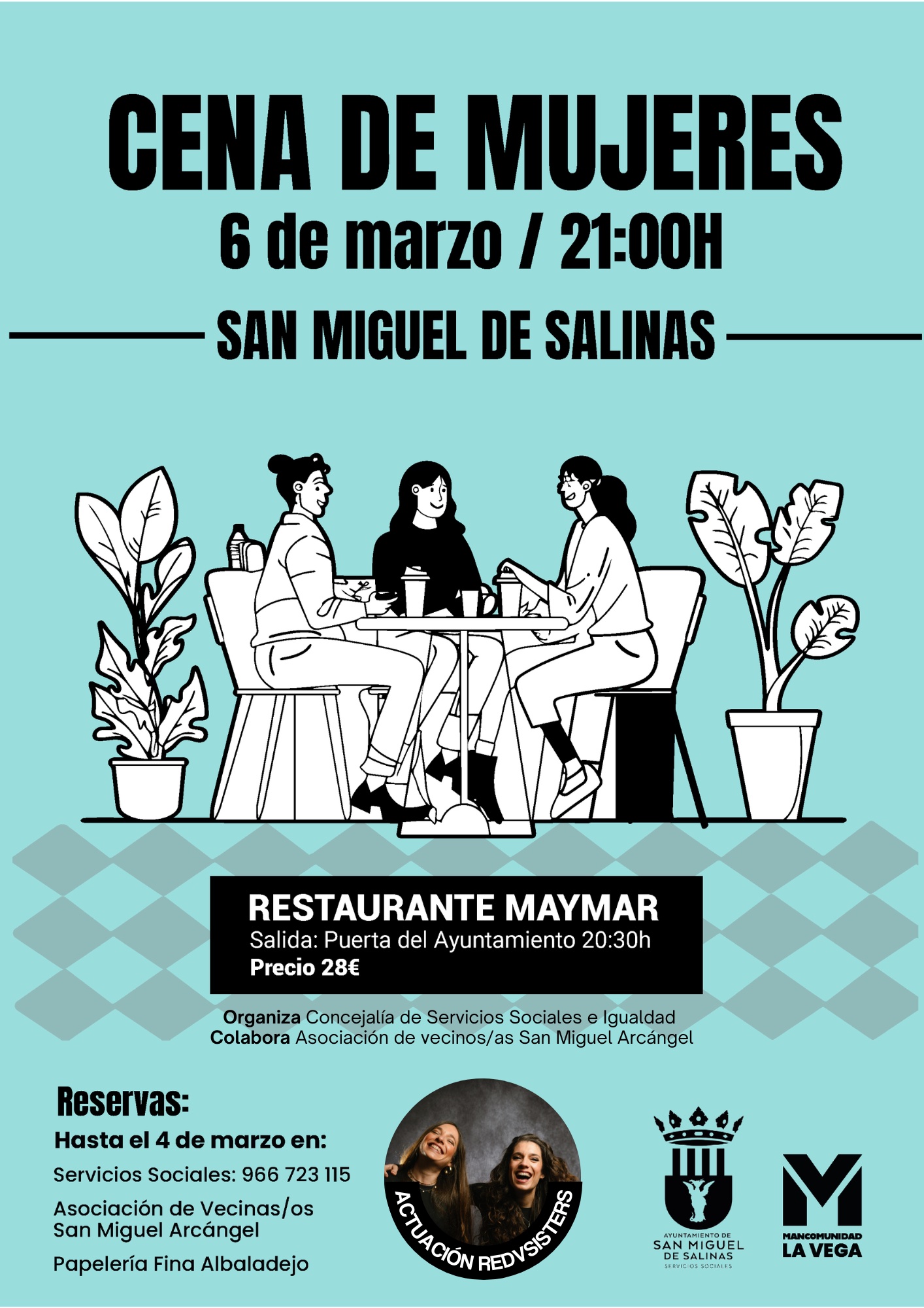 #ServiciosSociales ¡✨ Celebra el #8M con nosotras! 💜♀️ Como cada año, te invitamos a nuestra habitual Cena de Mujeres 🎉, ese momento especial del año que aprovechamos para juntarnos y celebrar en compañía el Día Internacional de la Mujer. 🥂👭