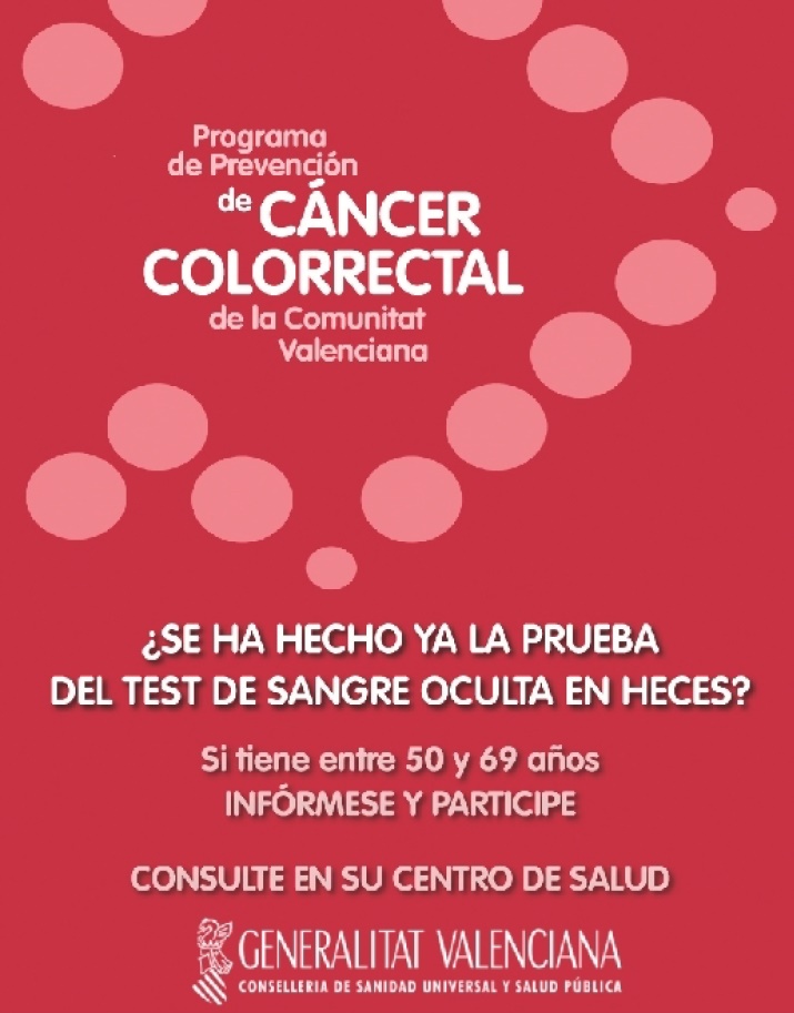 Desde el Centro de Salud Pública de Orihuela se está invitando a la población de San Miguel De Salinas a participar en el Programa de Prevención del Cáncer de Colon. Este programa va dirigido a hombres y mujeres de edades comprendidas entre 50 y 69 años, y consiste en la detección de sangre en una muestra de heces. Es un método sencillo y cómodo, ya que se envía al domicilio tanto el material como las instrucciones para la correcta recogida de la muestra.