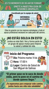 Desde el Ayuntamiento de San Miguel de Salinas te invitamos a formar parte de nuestras sesiones grupales para dejar el tabaco, un espacio de apoyo donde no estarás solo/a en este proceso.